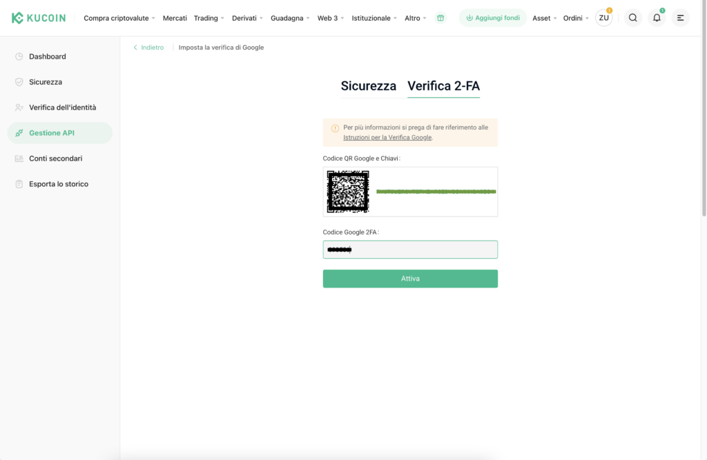 - Verifica con il codice che ti viene inviato per email e l’app Google Authenticator