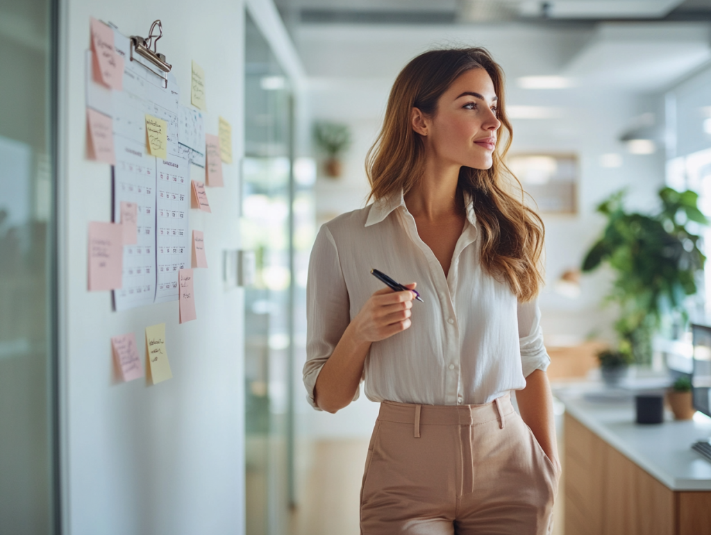 giovane imprenditrice davanti ad un calendario su cui è segnata la nuova scadenza fiscale del 16 gennaio 2025