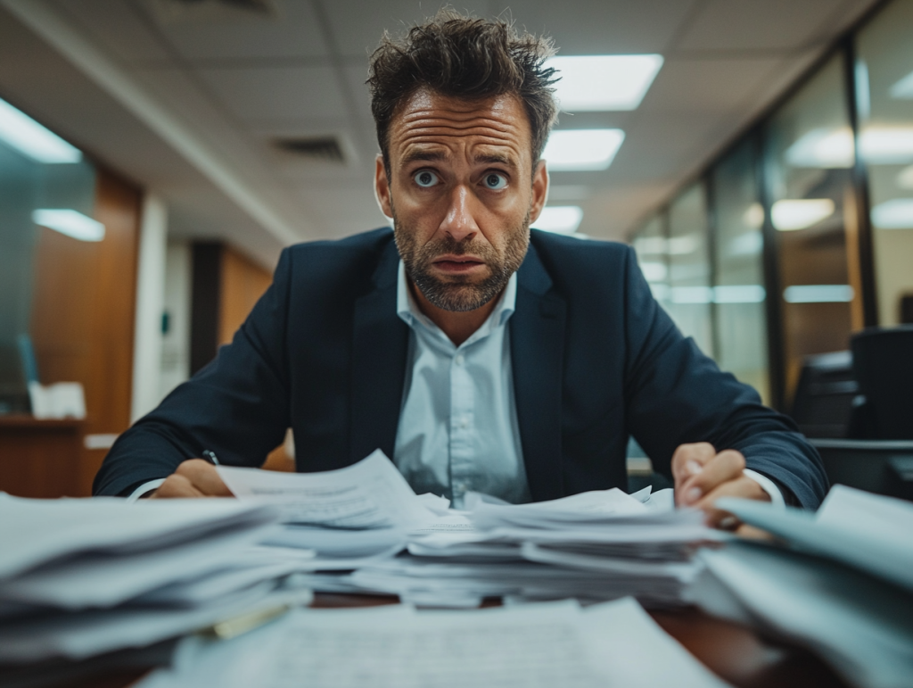 imprenditore che si trova davanti le carte degli avvisi bonari