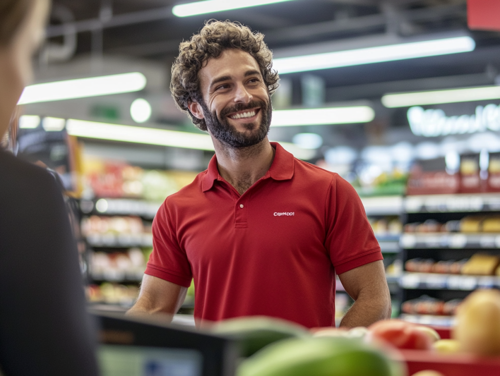 commerciante che sorride per i tagli alla spesa contributiva nel 2025