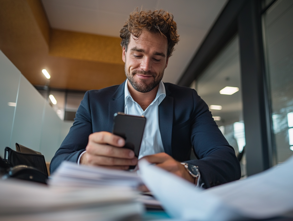 imprenditore che sorride della discesa del tasso di interesse BCE